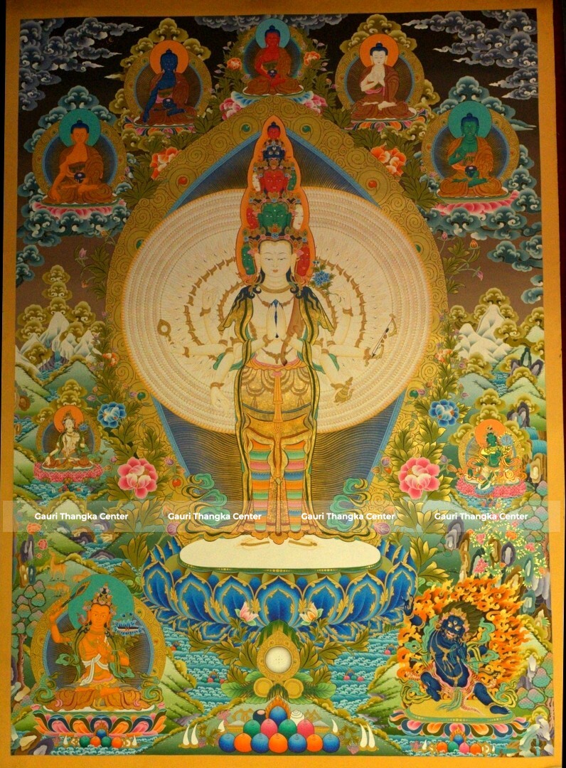 Avalokiteshvara – Master Quality 24K Gold Detailed Thangka