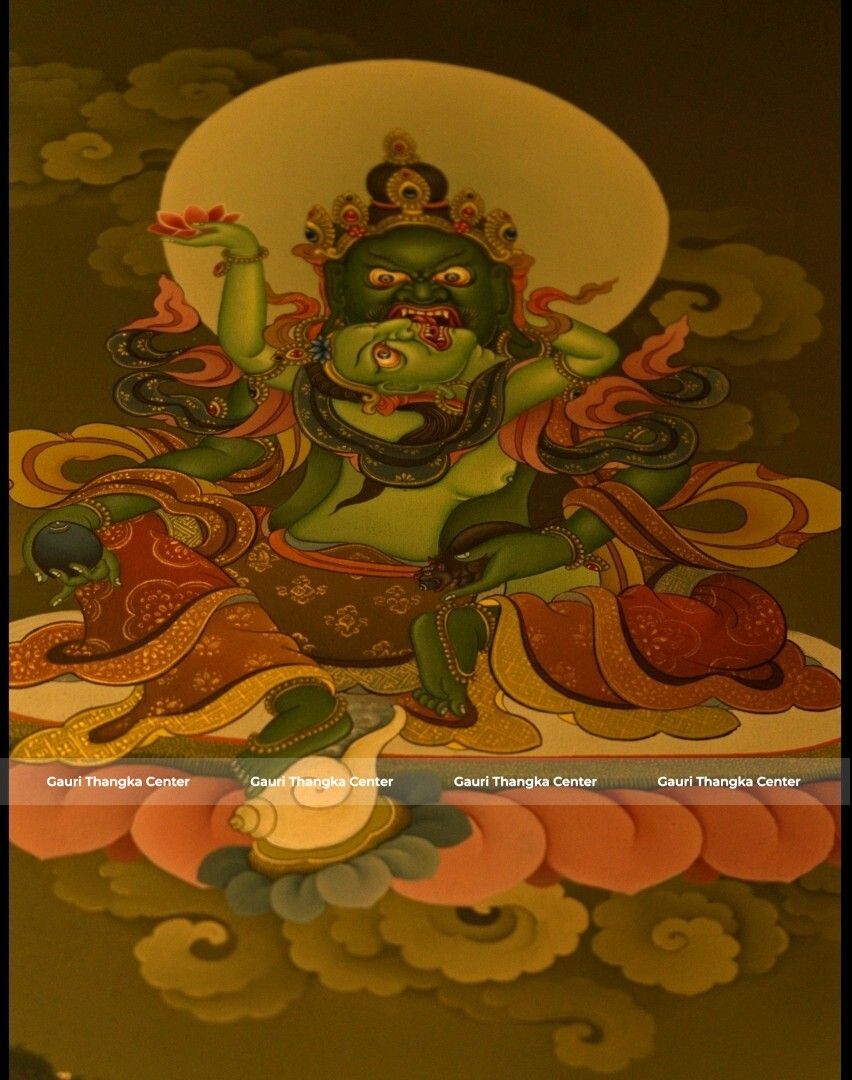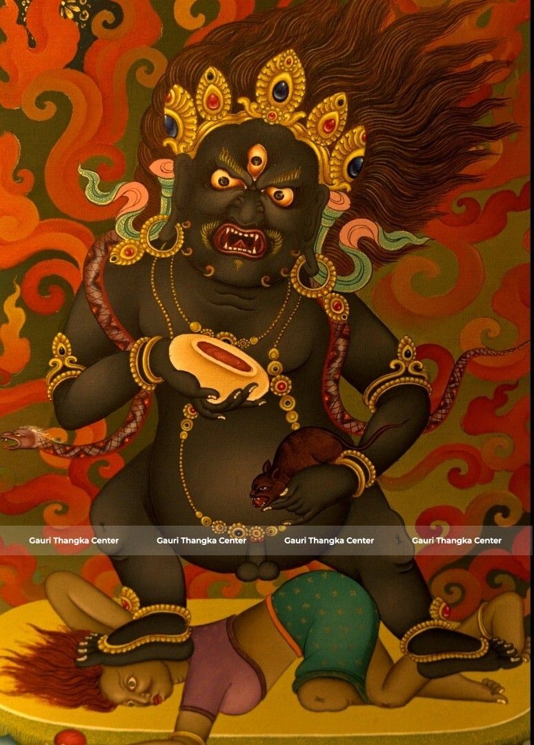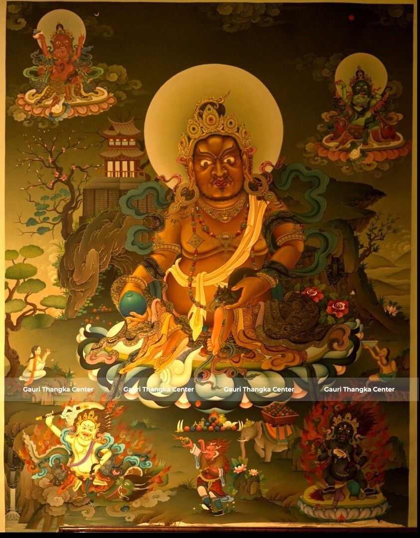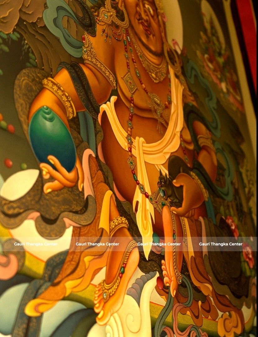 Jambhala – 24K Gold Detailed Thangka (Masterpiece, Newari Style)