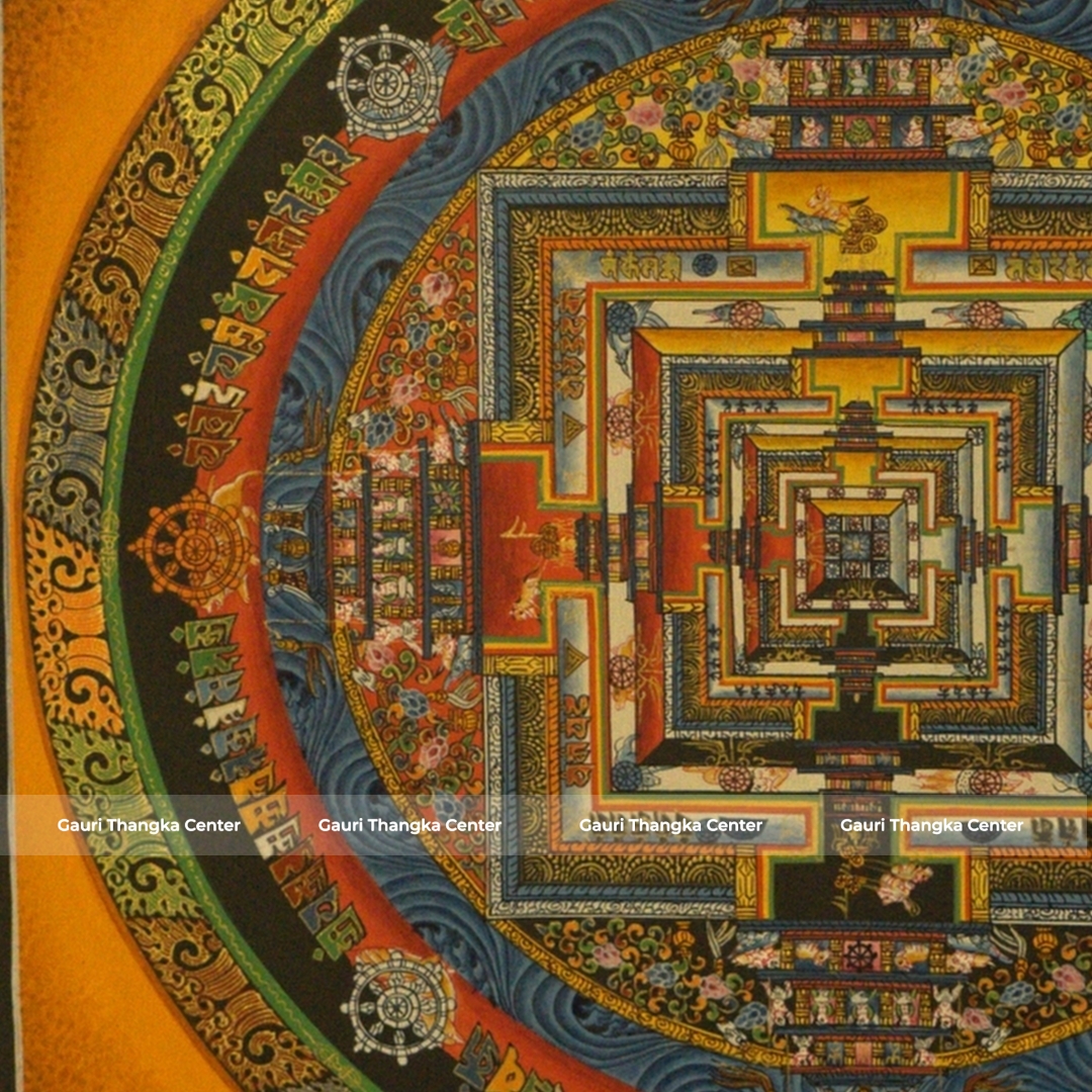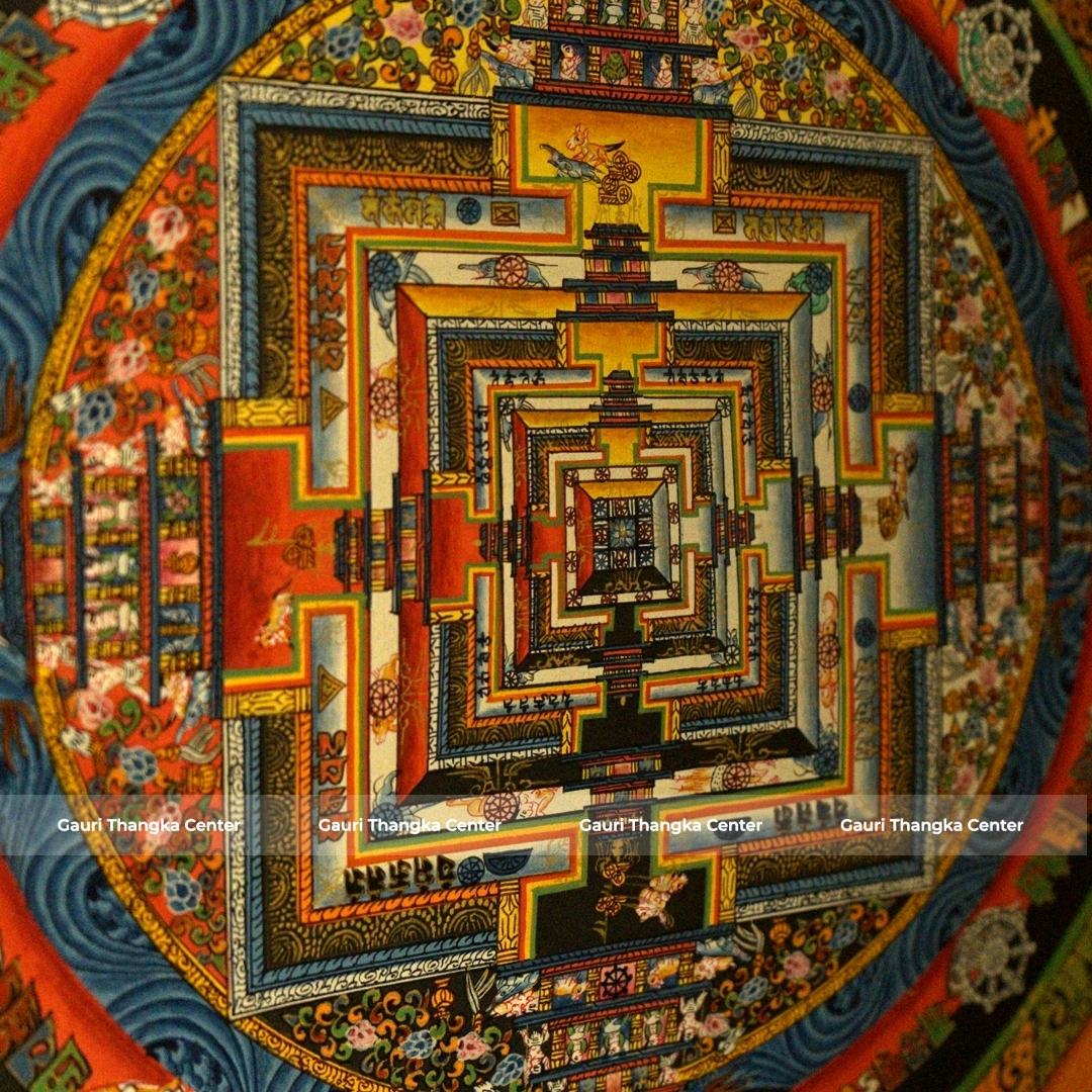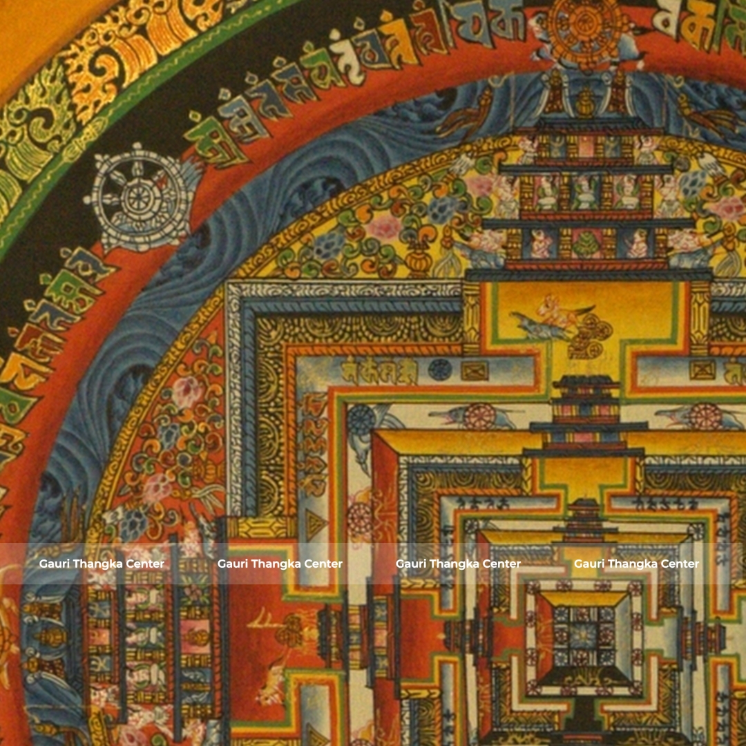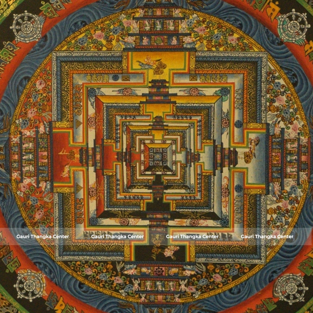 This Thangka features a detailed and symmetrical mandala structure with intricate patterns and sacred geometry. Each element is carefully arranged to represent balance, transformation, and the interconnected nature of existence, making it both visually powerful and spiritually meaningful.