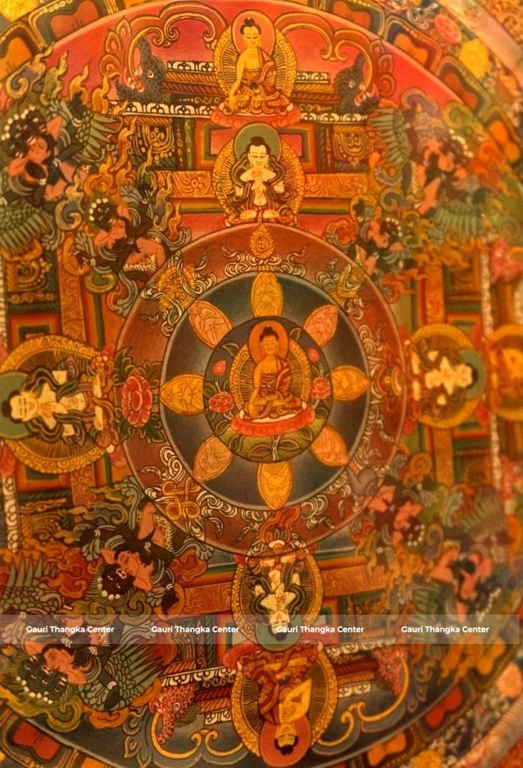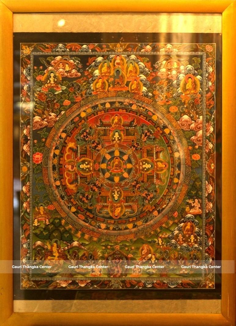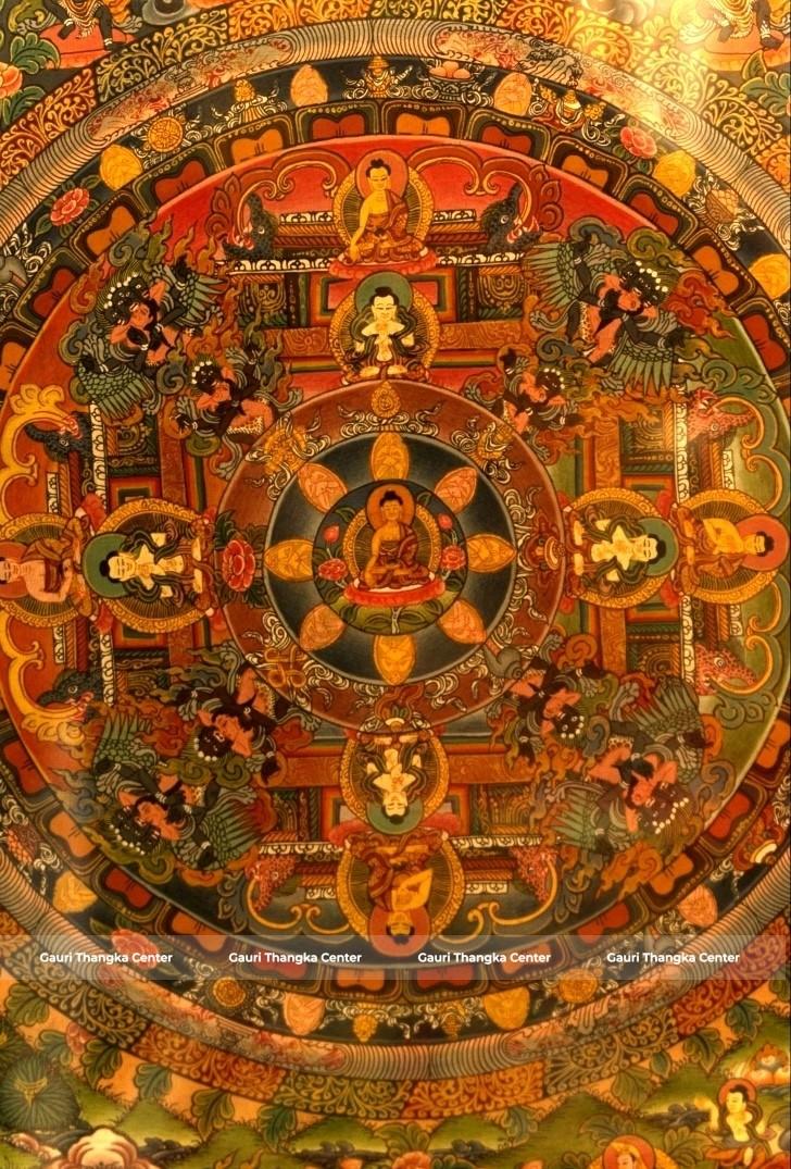 Sacred Mandala Thangka – 24K Gold Detailed Traditional Artwork