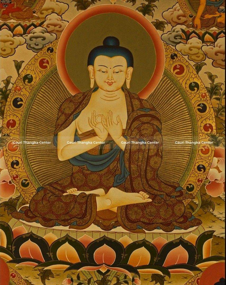 Vairocana Buddha – 24K Gold Detailed Thangka
